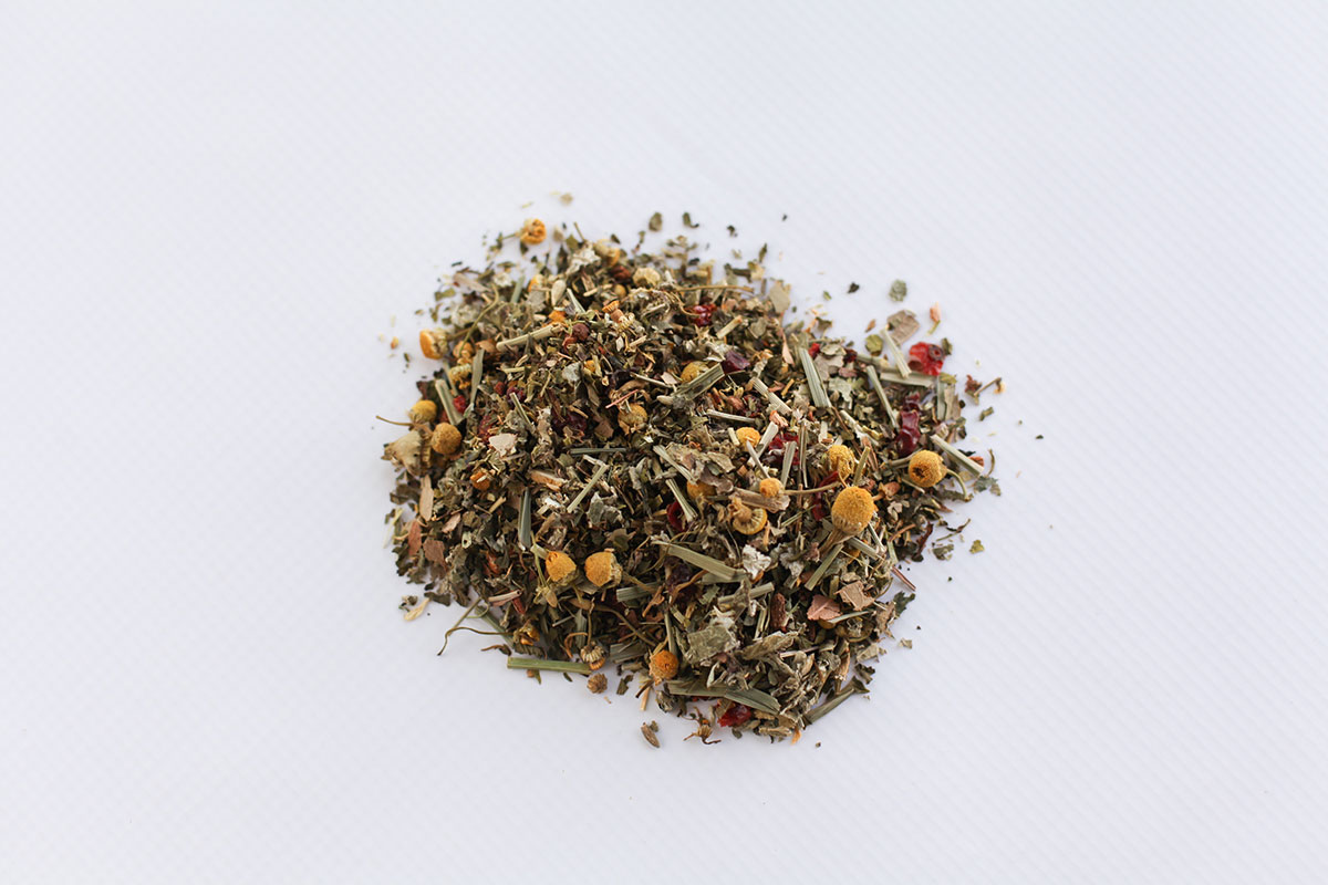 Chamomile, Rosehips, Raspberry Leaf, Papaya Leaf, Peppermint, Spearmint, Blackberry Leaf, Vanilla, Passion Flower, Red Clover, Star Anise, Wild Cherry Bark, Lemon Peel, Wintergreen, Lavender, Extracts