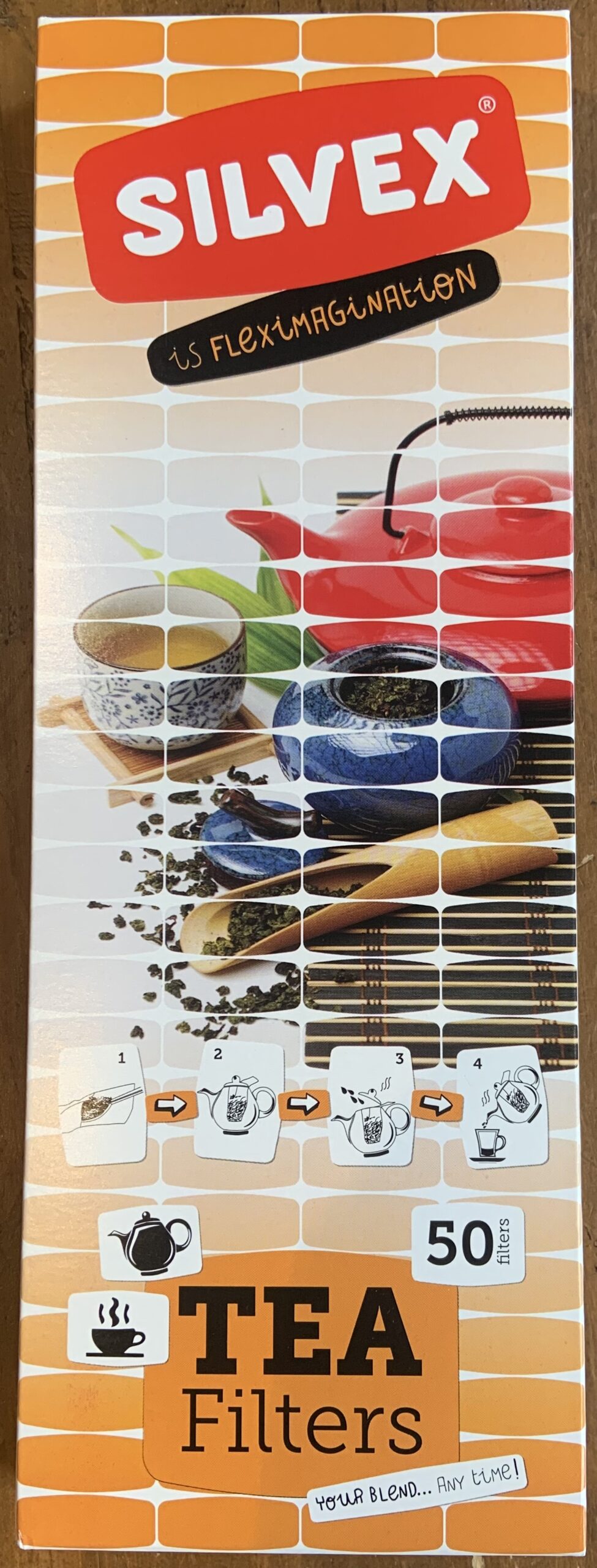 50 disposable paper tea filters. They can be secured by tying them in a knot at the top. These teabags will hold approximately 9-10 teaspoons.