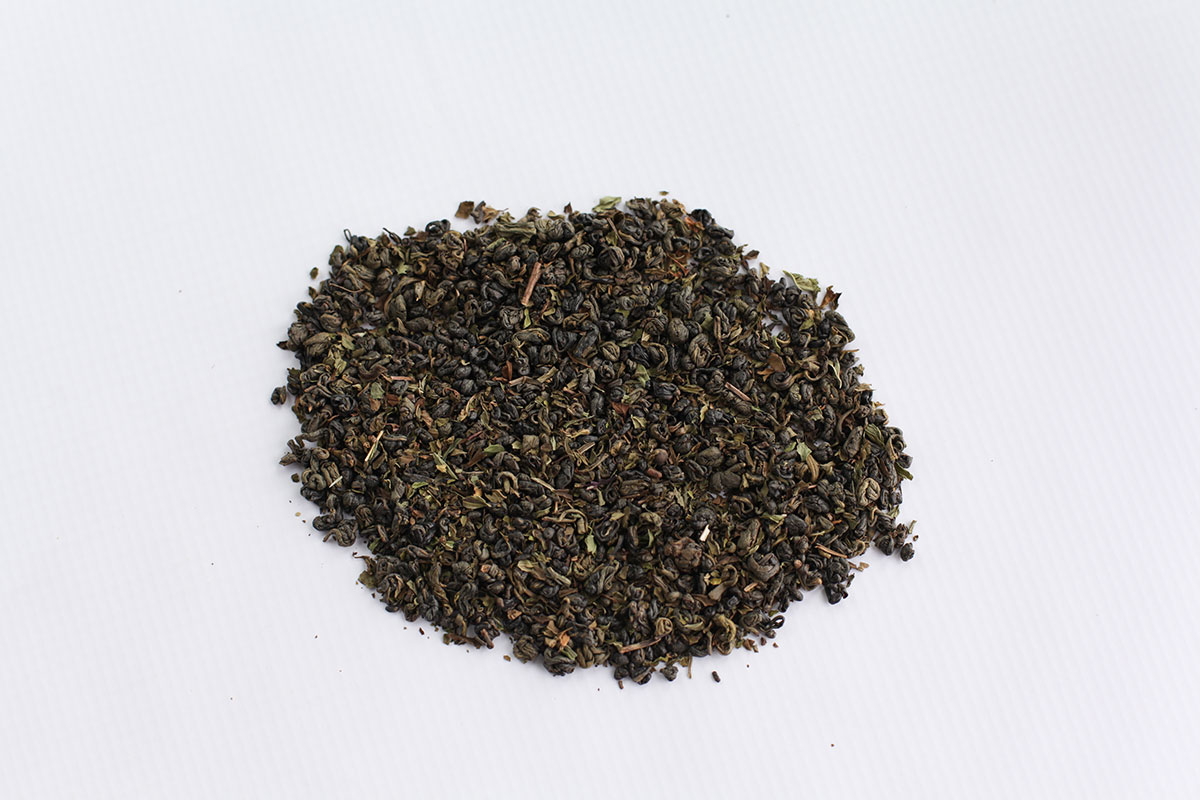 Gunpowder green tea mixed with peppermint and spearmint.