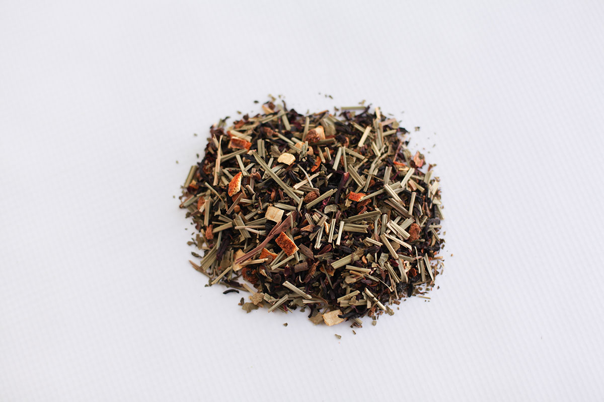 Hibiscus, Orange Peel, Rosehips, Lemongrass, Wild Cherry Bark, Blackberry Leaf, Spearmint, Licorice Root, Extract