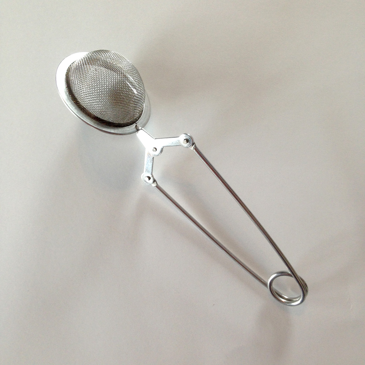 2″ stainless steel ball attached to a spring loaded handle. This ball will hold approximately 1 teaspoon of tea